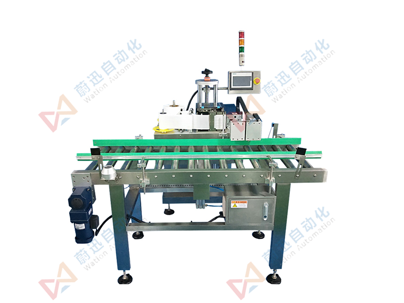 5,貼標機械手臂:通過打印引擎和氣動元器件的結合,吸標板先將打印出的標簽吸住,再貼至產品上。